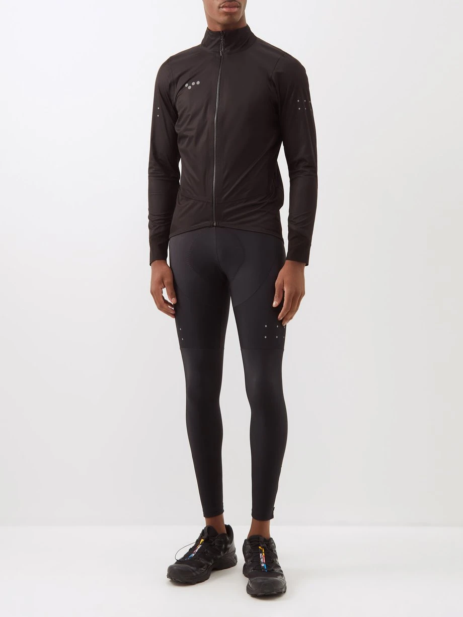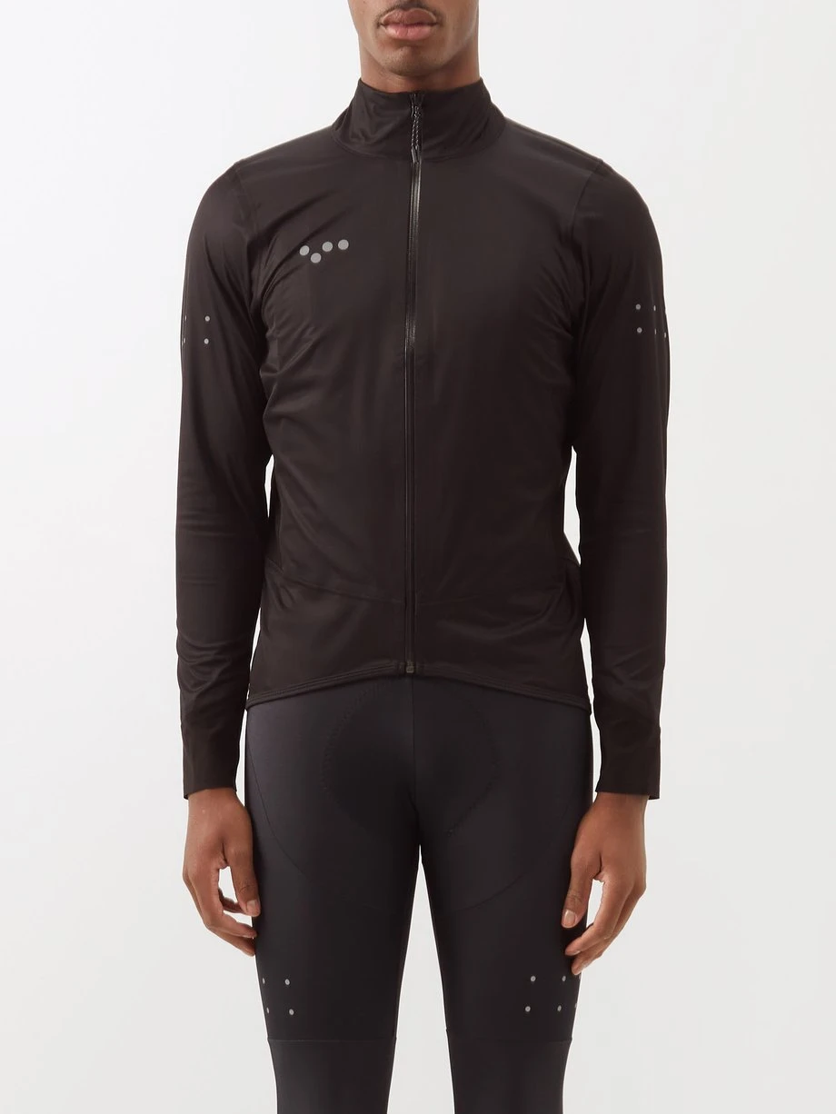 Pedla’s ultra-lightweight Bold cycling jacket is cut from a black technical shell that highlights the label’s innovative ethos. It’s constructed from AquaTECH fabric that has eVent® membranes, with heat-welded internal seams and zippers making it an entirely waterproof protective layer when riding in wet conditions.