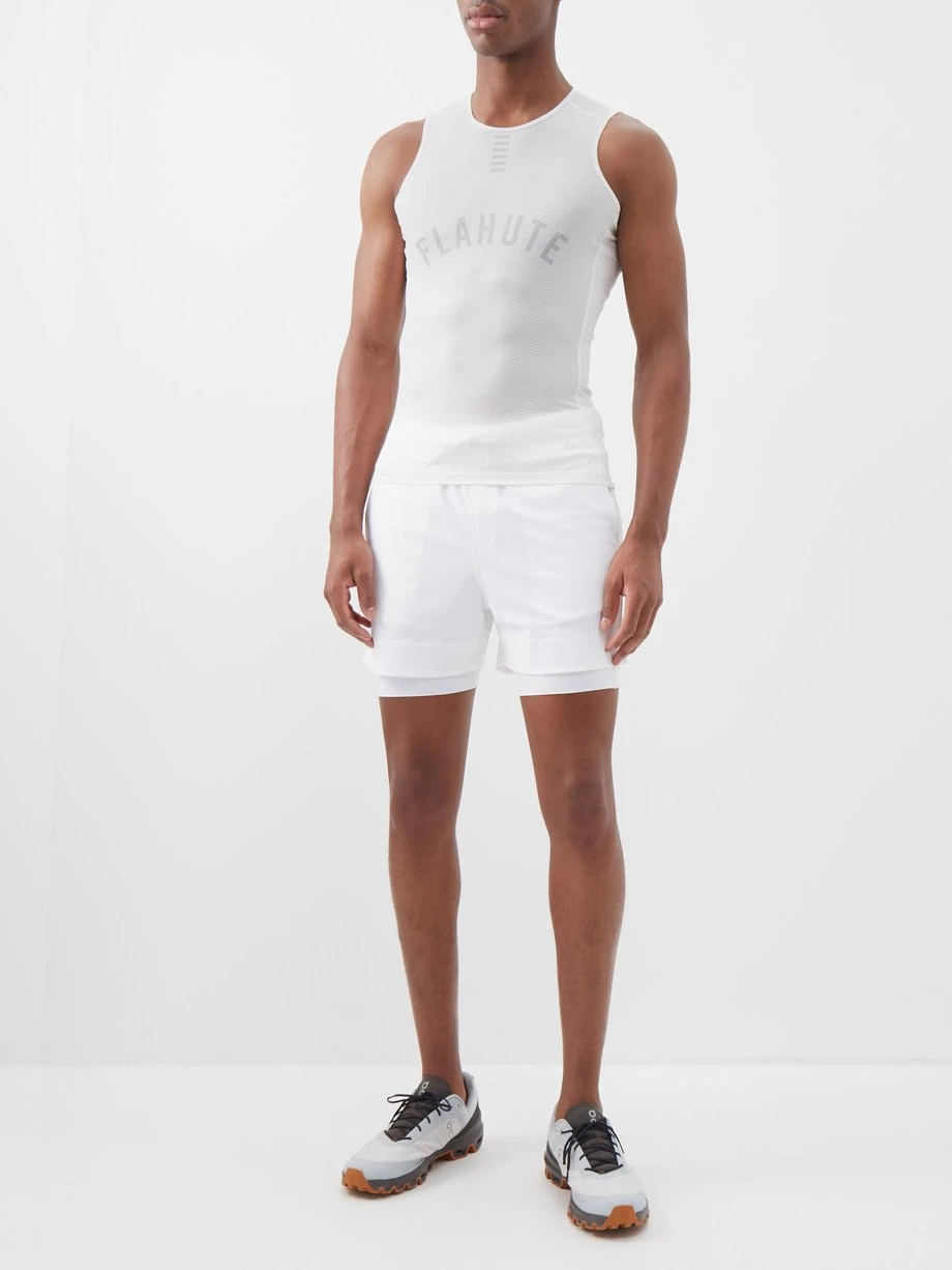 Rapha’s technical expertise comes through in this white base-layer tank top, cut from moisture-wicking stretch jersey and hallmarked with Flahute, a Flemish word used to describe seasoned cyclists.