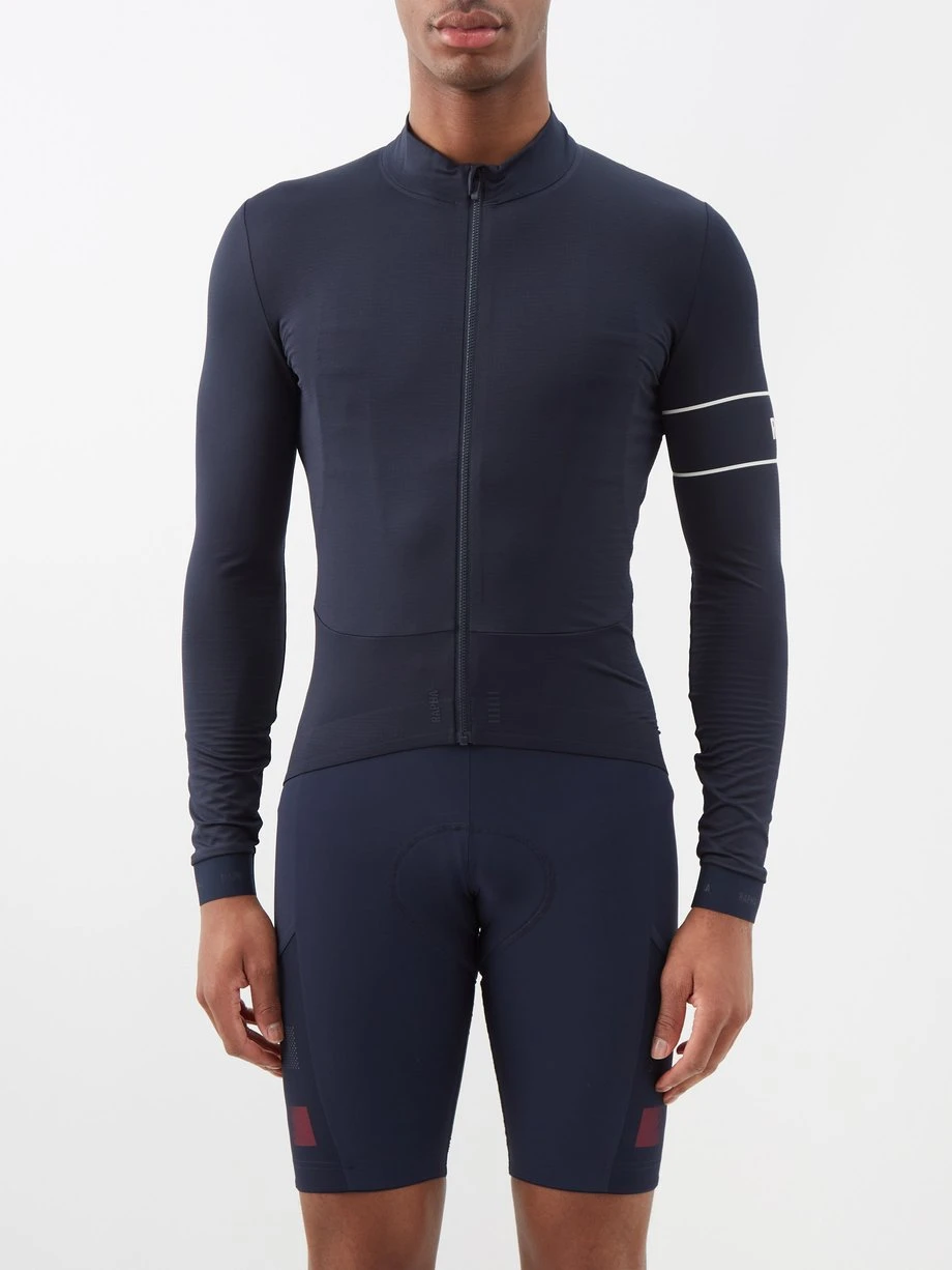 Shaped to a second-skin silhouette from breathable and moisture-wicking four-way stretch jersey, Rapha’s navy thermal top provides a streamlined layer on all-season rides.