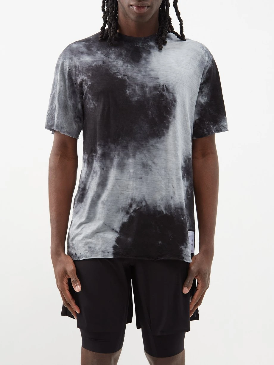 Satisfy’s black CloudMerino™ T-shirt is crafted from ultra-lightweight, hand-dyed Japanese merino wool with moisture-wicking and odour-resistant technology for a comfortable fit when running.
