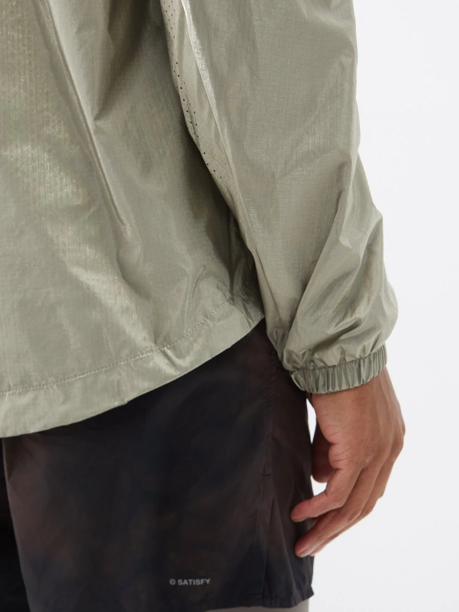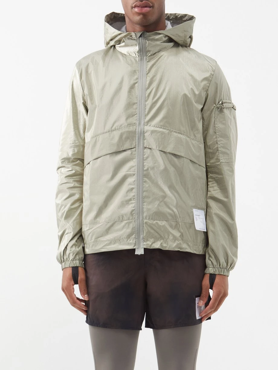 Satisfy designs this khaki green Silvershell windbreaker to be packable – it’s made from a weatherproof shell and has shimmering aluminium weaves for higher visibility.