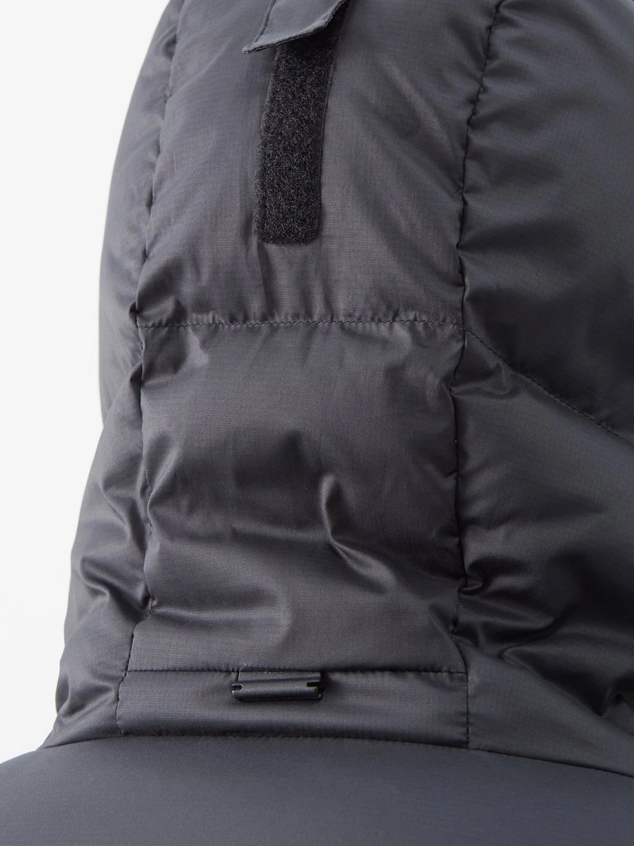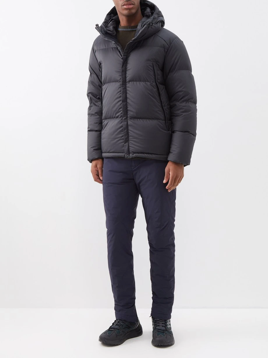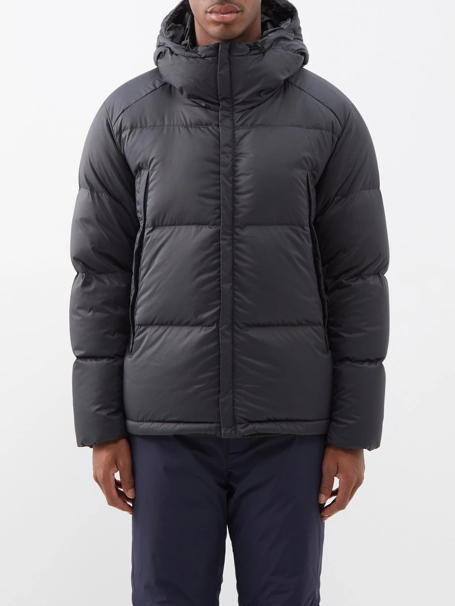 Snow Peak’s outdoor attire is inspired by expeditions to the Japanese Mount Tanigawa, including this black hooded coat made from quilted-down shell with weather-resistant properties.