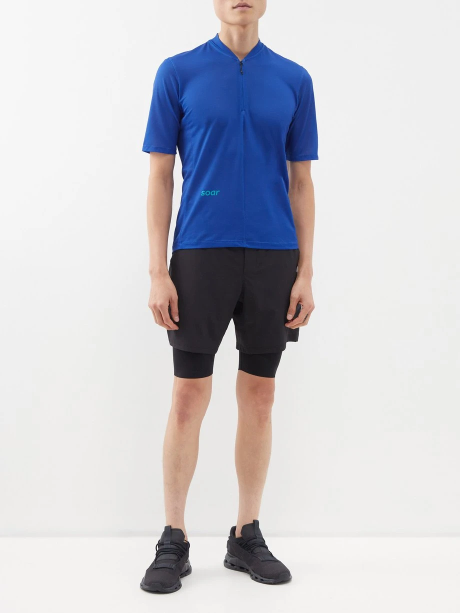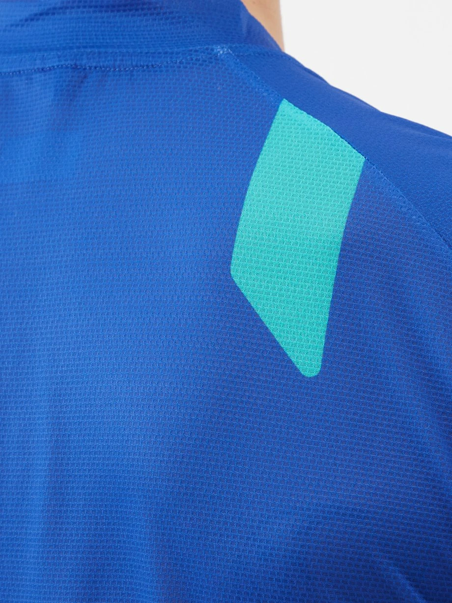 SOAR’s blue 2.0 Hot Weather half-zip T-shirt is crafted from the label’s innovative moisture-wicking mesh to ensure maximum comfort when running and training.
