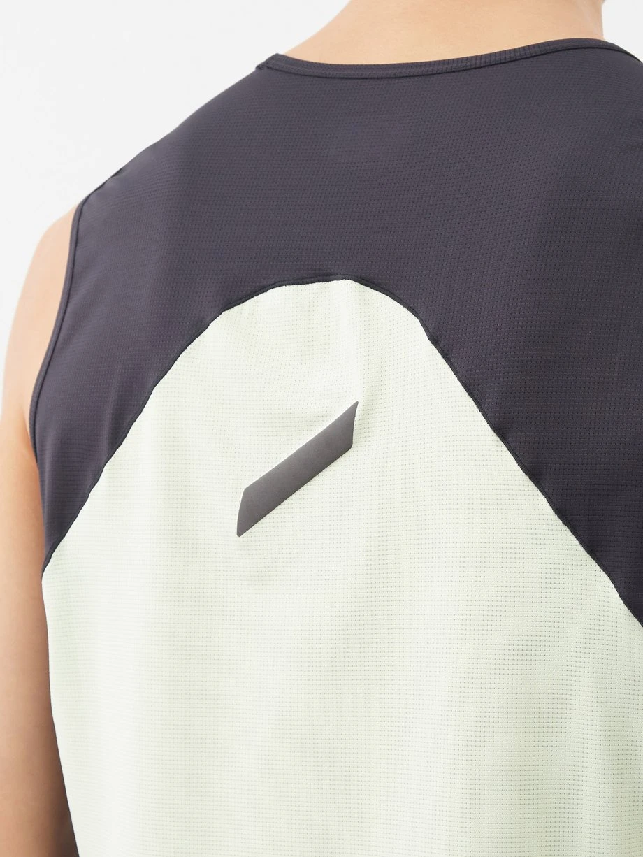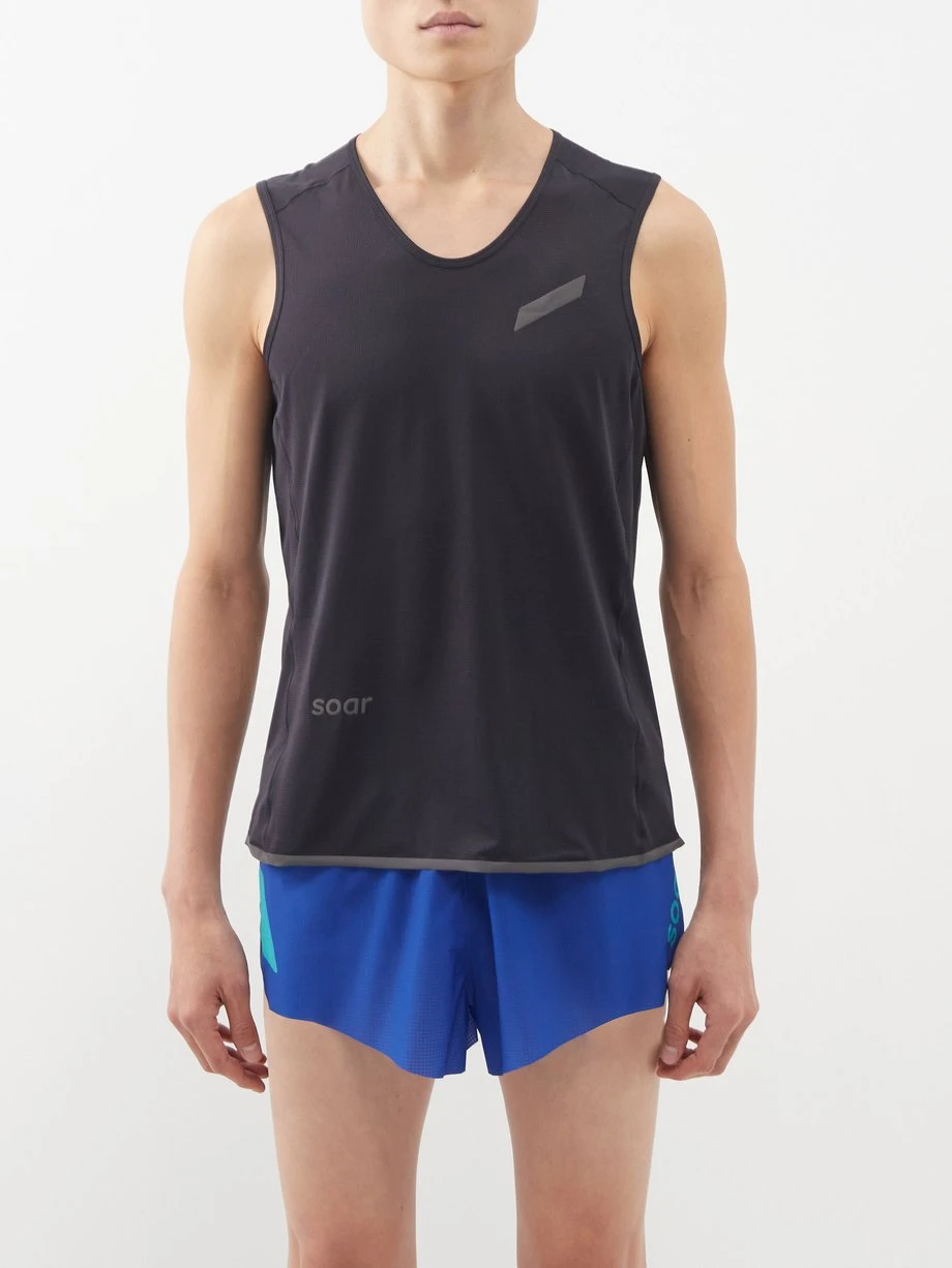 SOAR’s black 2.0 tank top is constructed from ultra-lightweight stretch mesh with seams stragetically placed to avoid high-friction areas when running.
