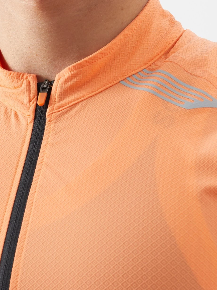 Warm up for high-intensity workouts with SOAR’s peach-orange Tempo 3.0 top, woven from a 3D textured nylon blend that prevents overheating as the pace increases.