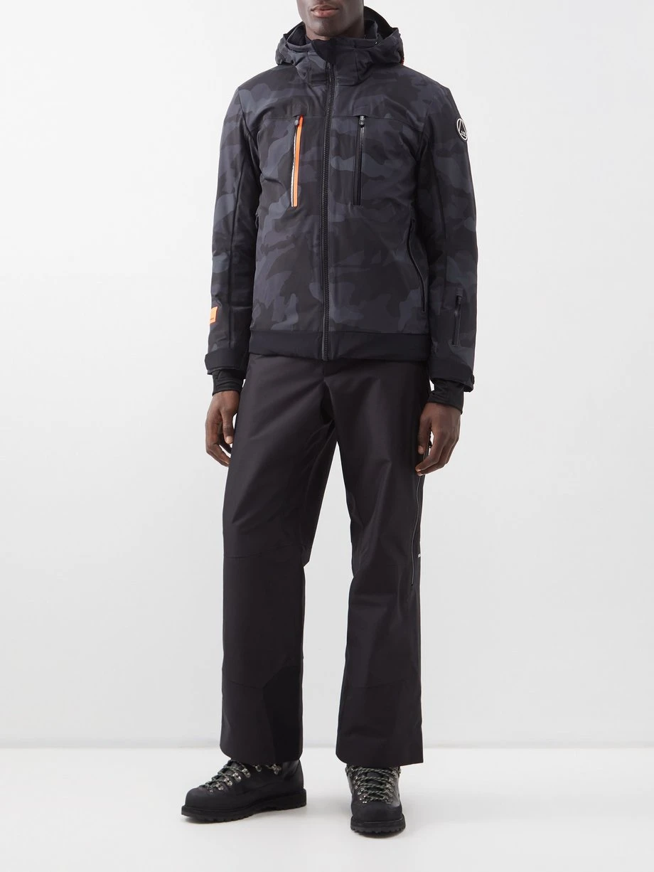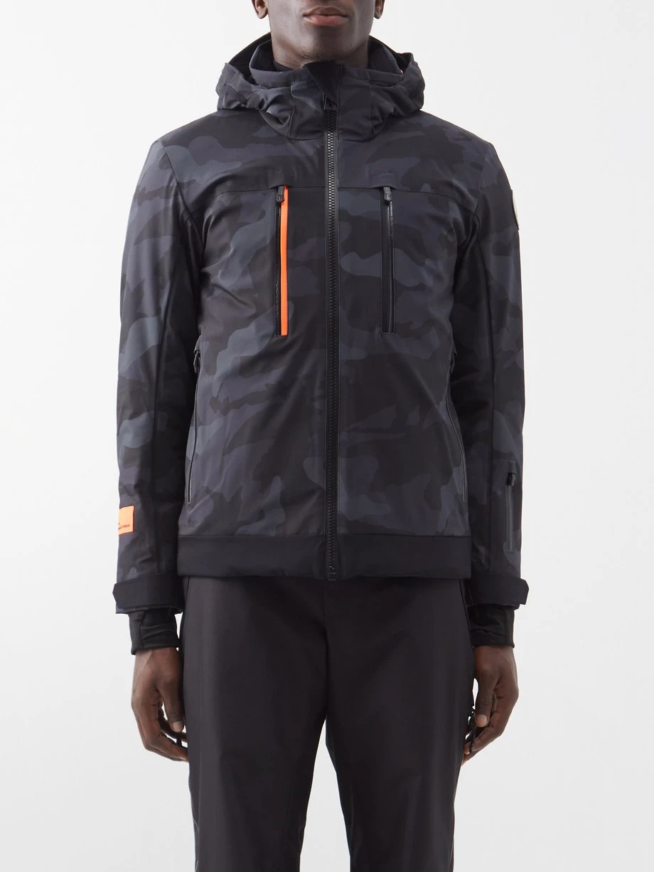 Sportalm uses its signature four-way stretch fabric to craft this grey ski jacket, making it waterproof, breathable and lightweight – ideal for all-day adventuring on the slopes. The camouflage-printed outer is fitted with a structured hood, multiple zipped pockets and a drawstring hem for an insulating finish.