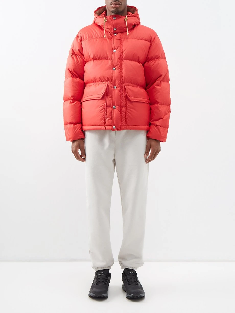 The North Face’s red ’71 Sierra jacket is a shortened update of the label’s 1975 style of the same name, this time rendered in recycled shell with Responsible Down Standard-certified padding. It features a hood and spacious flapped pockets.