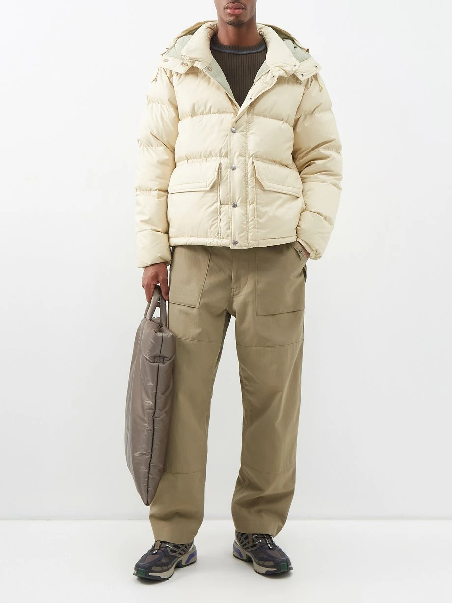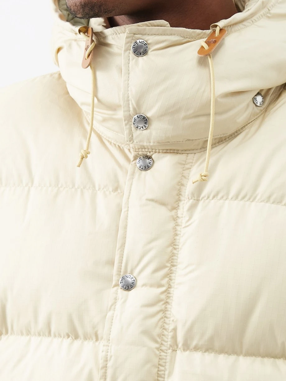 Based on an archival style from 1971, The North Face’s cream ’71 Sierra jacket is shortened but still equipped with deep-quilted down insulation and a weatherproof recycled-fabric outer shell. It also features a practical hood and flapped pockets.