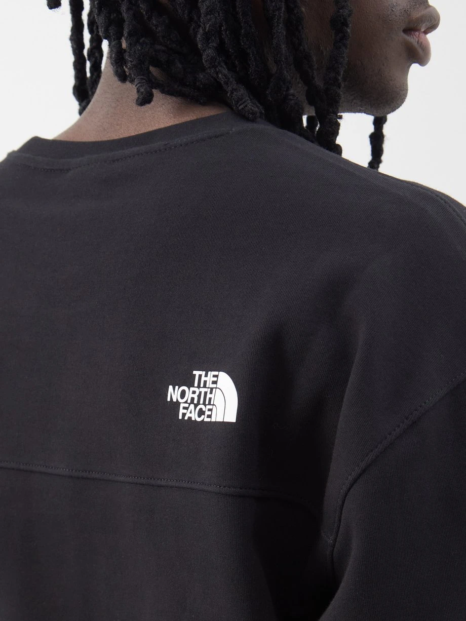 The North Face’s black sweatshirt is cut from soft cotton-blend then defined by a nylon zip patch pocket hallmarked with white logos.
