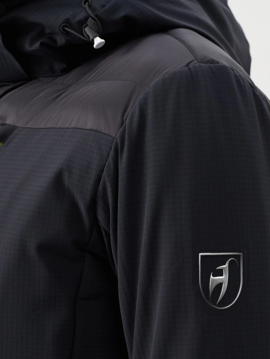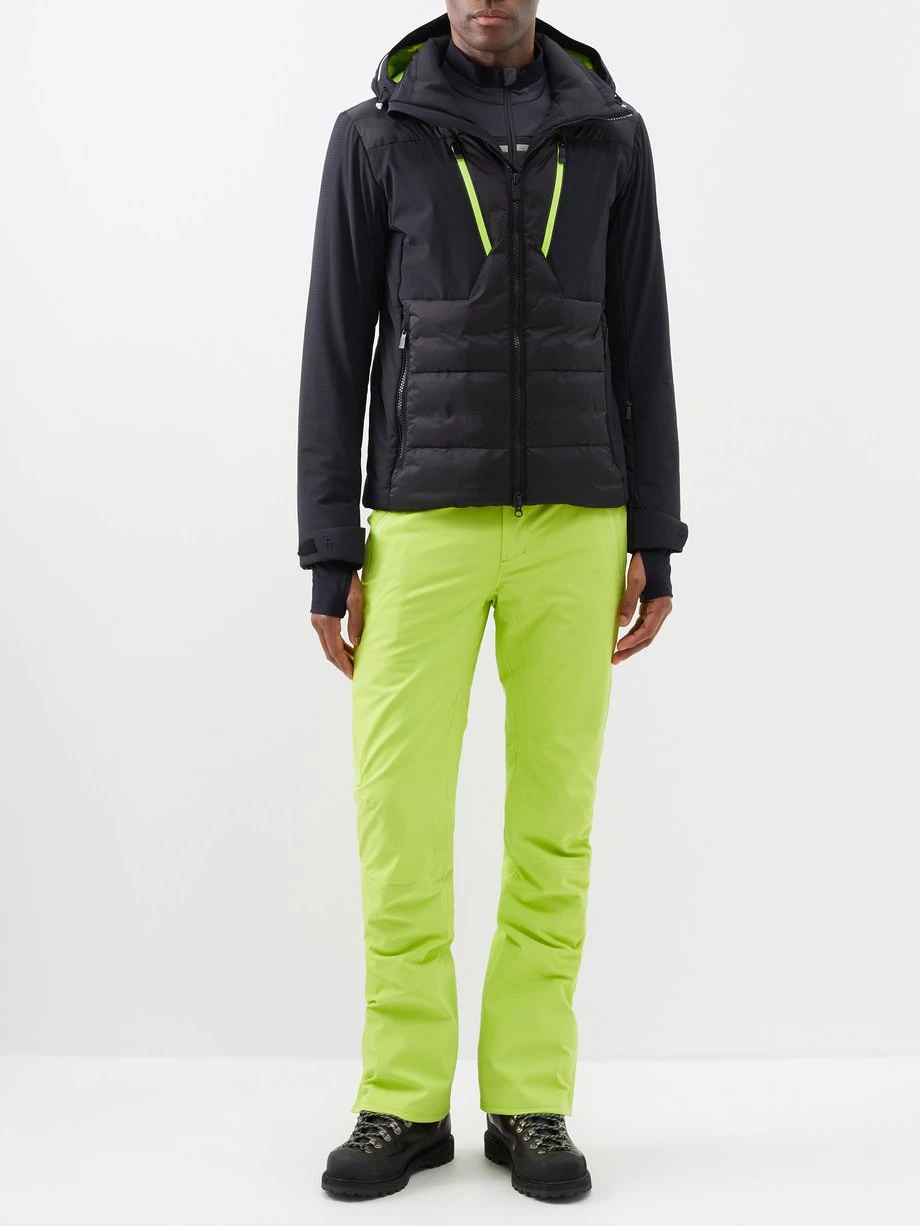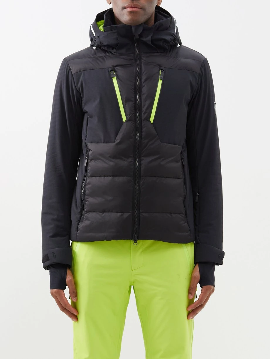 Toni Sailer’s black Ano Splendid ski jacket offers a streamlined silhouette without compromising on comfort. Made from breathable but weatherproof four-way-stretch shell, it’s designed for ease of movement and features insulating padding, a snow gaiter and an adjustable hem.