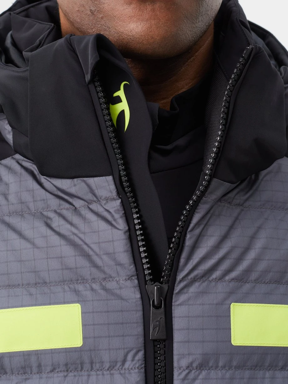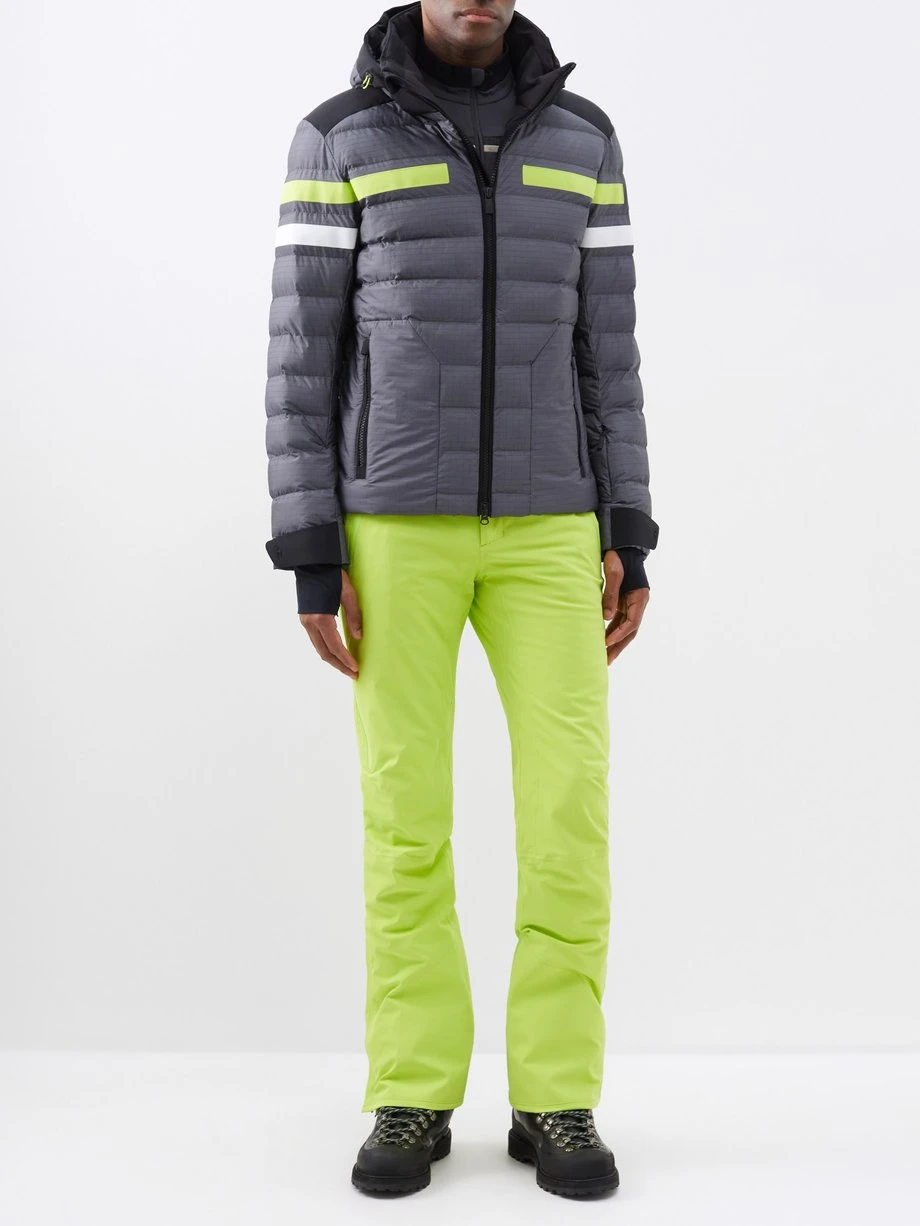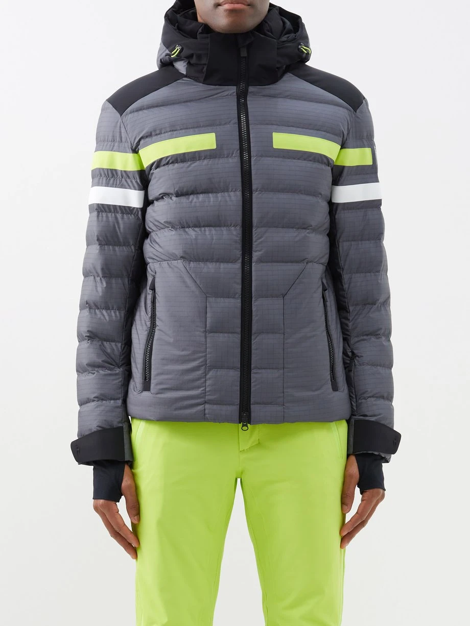 Toni Sailer’s grey Cyrus Splendid ski jacket is made from lightweight shell that’s weatherproof, breathable and equipped with velcro and thumbhole jersey cuffs. It’s quilted with supremely insulating Sorona® fibreballs and features an internal snow gaiter with anti-slip elastic to ensure the heat stays in and the cold stays out.