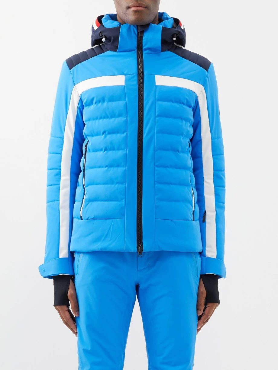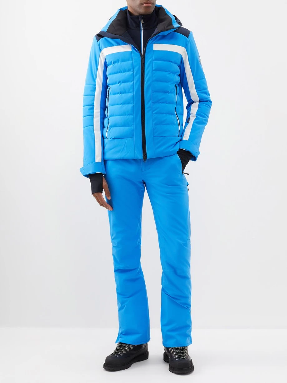 Quilted with insulating PrimaLoft® and imbued with water and wind-proofing properties, Toni Sailer’s blue Louis ski jacket is a streamlined yet resilient option for alpine adventures. It’s equipped with a drawstring-adjustable hood and has multiple zipped pockets for carrying the essentials with you.