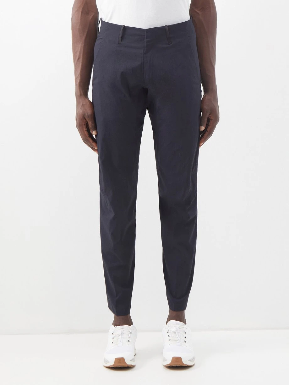 Veilance reimagines tailoring through a utilitarian lens for these black Convex LT trousers, which are made from a durable, water-repellent nylon-blend with taped seams.