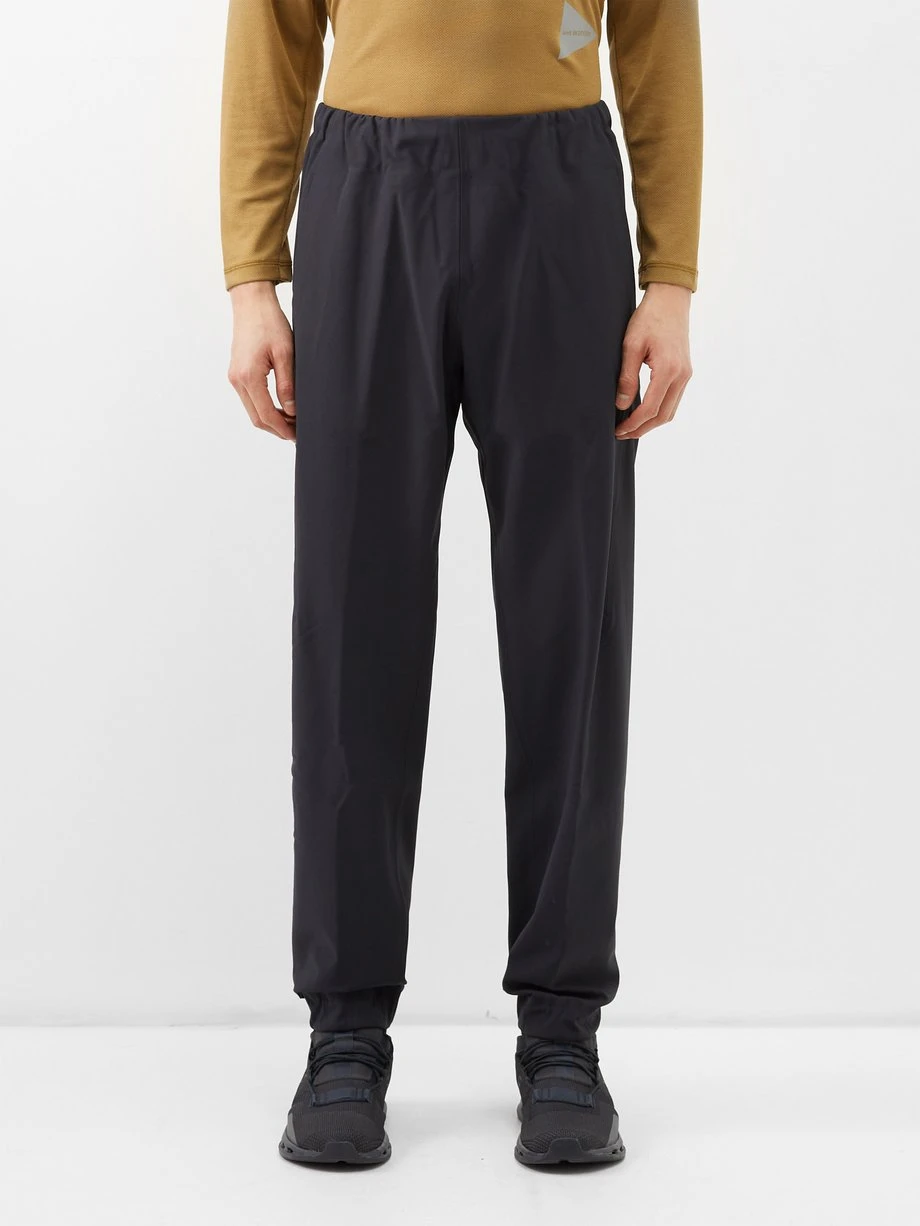 Veilance’s ergonomic design approach is encapsulated in these black Secant track pants, which are crafted from a water-repellent, fleece-lined technical nylon blend.