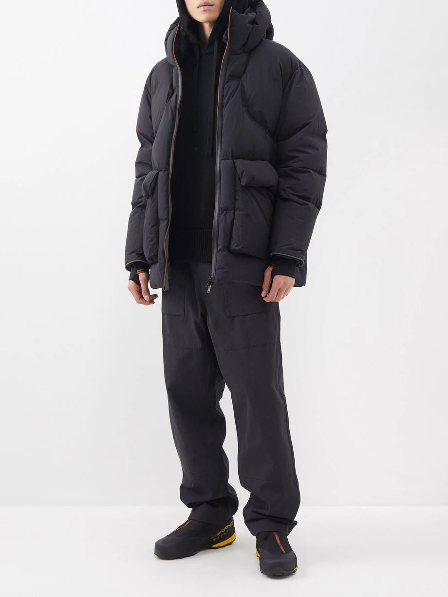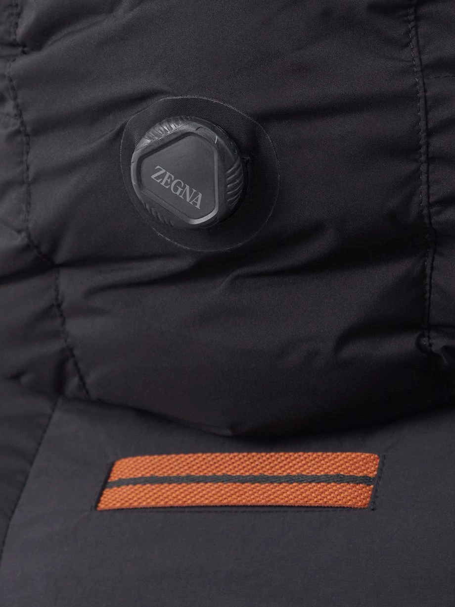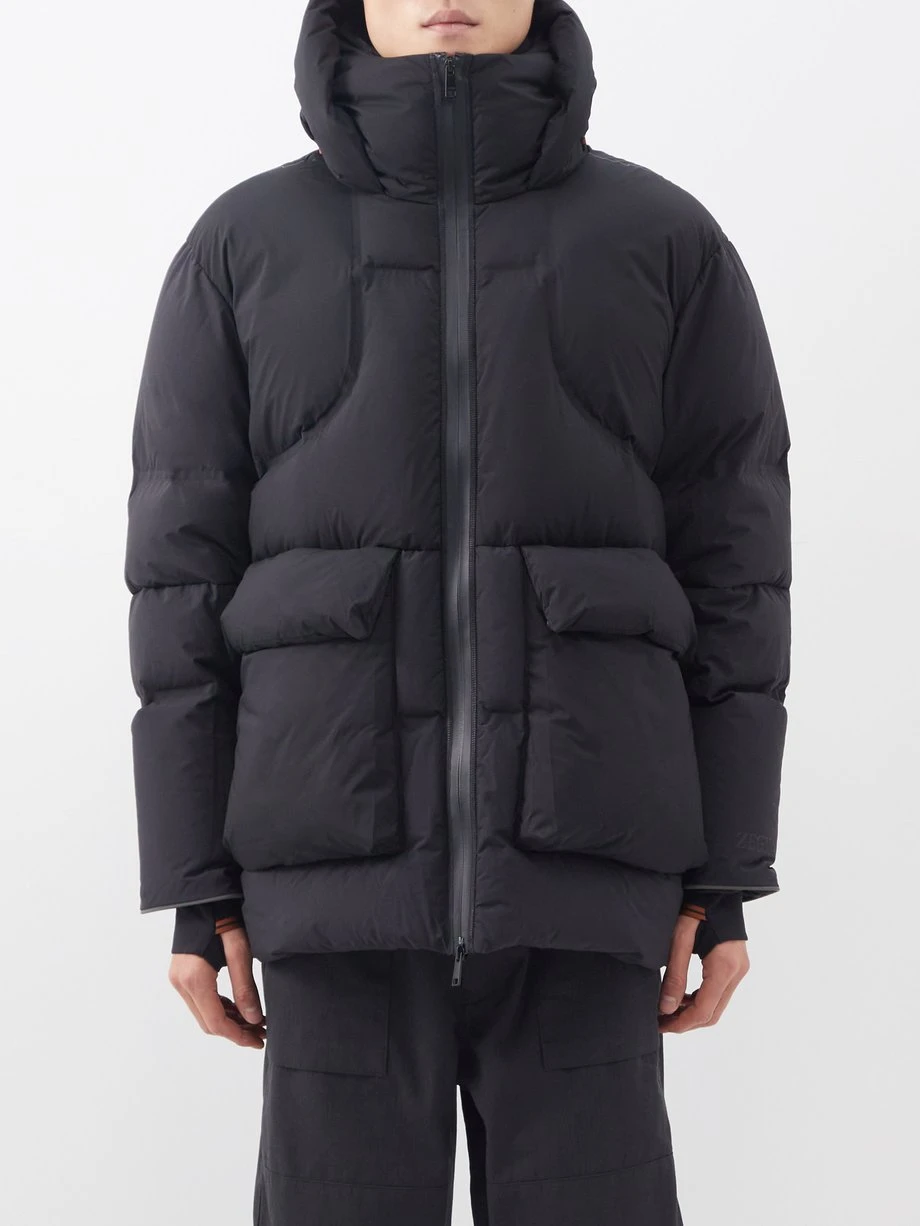 ZEGNA’s black hooded down coat is part of the Italian label’s #UseTheExisting™ collection, which combines technology and eco-conscious design to reduce fabric waste.