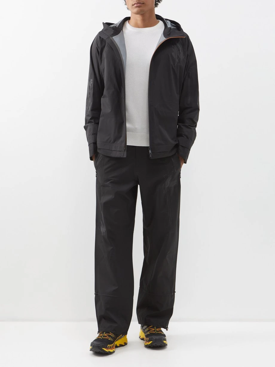 The shell of ZEGNA’s black trousers uses fibres leftover from the label’s vertical manufacturing process – a part of Alessandro Sartori’s environmentally conscious #UseTheExisting project.